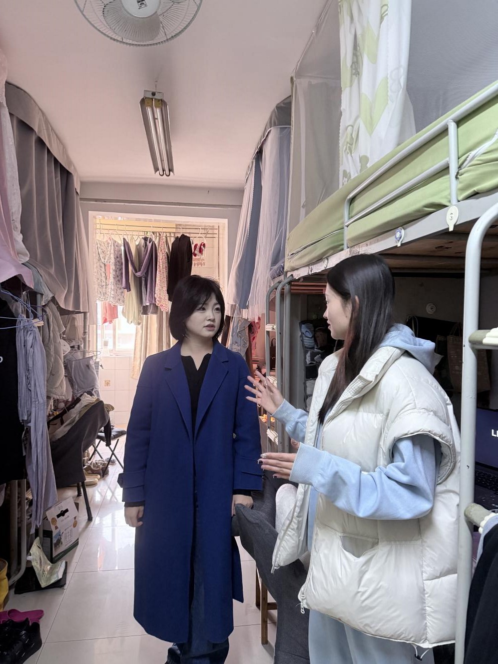 在查寝过程中,辅导员们不仅关注宿舍的清洁程度,还着重考察了员工们的生活态度和集体荣誉感。他们耐心指导员工们如何更好地整理个人物品,保持宿舍的整洁与美观,并鼓励大家相互学习、共同进步。