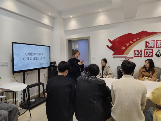 辅导员穆甜强调了心理健康的重要性,并表示此次培训活动对于提升心理委员的专业能力具有重要意义,围绕心理健康的基本概念、常见心理问题的识别与应对、心理危机干预等方面进行了详细的讲解。