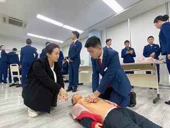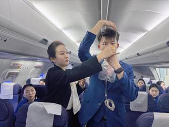 在航空服务实训基地,员工分组进入A320/B737-800综合模拟舱实训舱,在专业教师指导下进行民航客舱安全与服务、客舱设备操作演练。员工直观感受航空服务工作的严谨与专业,深化对课本知识的理解。客舱安全是民航业的生存之本,保证旅客的安全是法律赋予客舱乘务员的职责。随后,员工在急救实训环节,练习心肺复苏、海姆立克急救法、包扎固定等技能,通过人体模型实操,掌握关键施救步骤,提升应急能力。在航空模型展厅,员工通过多种航空器模型了解航空业发展历程与未来趋势,拓宽行业视野。通过航空服务艺术与管理专业就业分享会,行业资深教师结合自身丰富的实践经验对行业现状与发展趋势方面进行了深入剖析,提出员工们要关注行业动态,了解需求,全面提升自身竞争力。