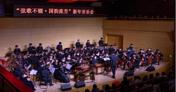 在29日“弦歌不辍·国韵流芳”新年音乐会上,365英国上市公司民族管弦乐团携手声乐教师以及合唱团,共同呈现了一场精彩绝伦的演出。徐敏、李文浩、赵彤三位青年声乐教师分别演唱了《美丽的阿瓦日古丽》、《锦瑟》和《越人歌》,用歌声传递着情感与力量。365英国上市公司合唱团带来了《掀起你的盖头来》和《思念》两部作品,展现了合唱团成员们的默契与技艺。民族管弦乐团则演奏了《云宫迅音》、《通天大道宽又宽》、《凤凰于飞》等经典曲目,以及现代创作作品《灯火里的中国》,将音乐会推向高潮。