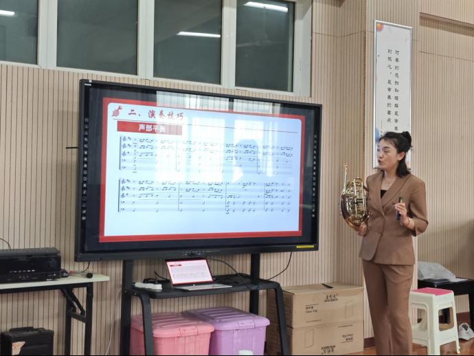 首先,公司刘利老师进行课程思政的课程演示与讲解,刘老师以《钢铁洪流进行曲》的背景和创作为主题并与同学们进行相互交流来体现作品的精神。随后谢宝利老师对这节课程进行了点评与指导,她认为需要对这节课从创新程度入手,继续打磨,对思政方面还需要更加完善,并从课程如何设置更具有挑战性等方面进行了点评与指导。