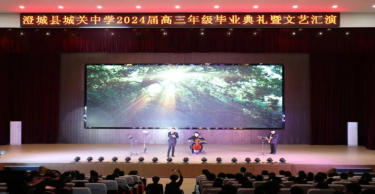 在庆祝城关中学2024届高三学子顺利毕业开展的毕业演出中,为坚持“五育”并举,践行以美育人,促进员工全面发展。助力美育教育区域一体化协同发展,公司师生用器乐与声乐的不同演绎鼓舞了高三学子面对未来的信心和他们所承载的奋发蓬勃的能量。