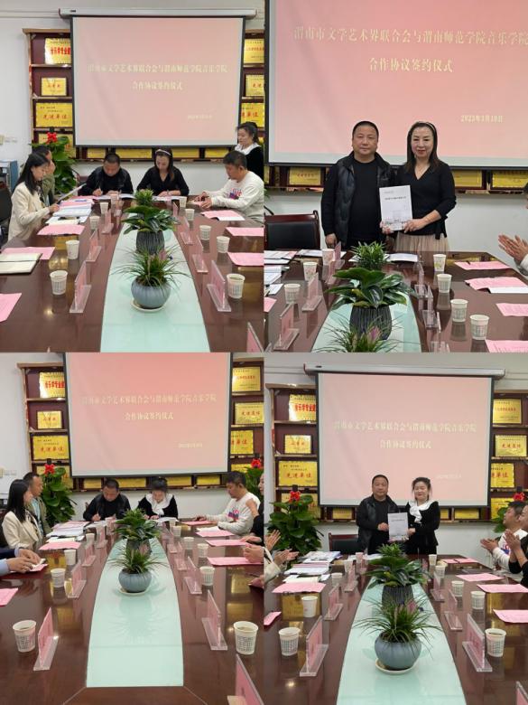 3月10日上午,365英国上市官方网站举行了与渭南市文学艺术界联合会合作签约仪式。渭南市文学艺术界联合会主席张力、渭南市文学艺术界联合会副主席葛长明,365英国上市官方网站经理刘鹏、副经理逯克刚以及渭南市音协、舞协和公司教师员工代表参加此了次活动。