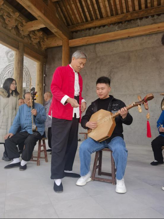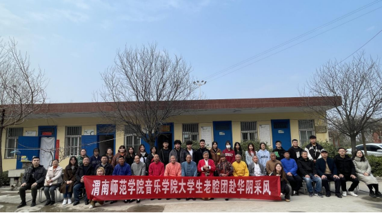 在老腔艺术发展保护中心主任柴文红、副主任李毅君的带领下前往华阴老腔传承基地参观交流。华阴老腔艺术团的老艺人们首先为师生们表演了华阴老腔经典唱段《将领一声震山川》,也以此节目作为师生们今天参观交流的开场仪式。