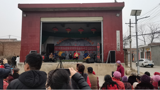 最后,大家在柴文红主任的带领下共同前往华阴市坪塬村观看2023陕西省渭南市华阴市戏曲进乡村文化惠民演出。华阴老腔演出期间,老乡们时不时鼓掌叫好,现场气氛异常热烈。