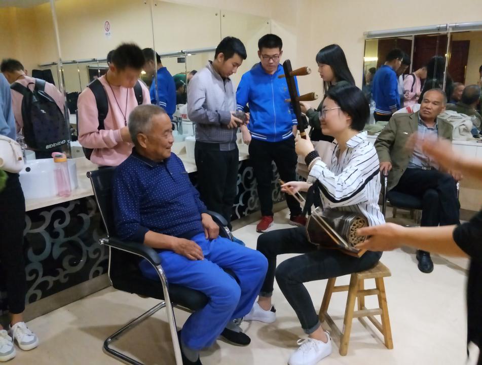 (老员工老腔剧社的同学们积极与老腔老艺人进行讨论交流与学习)