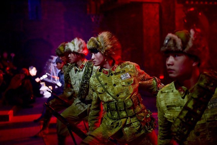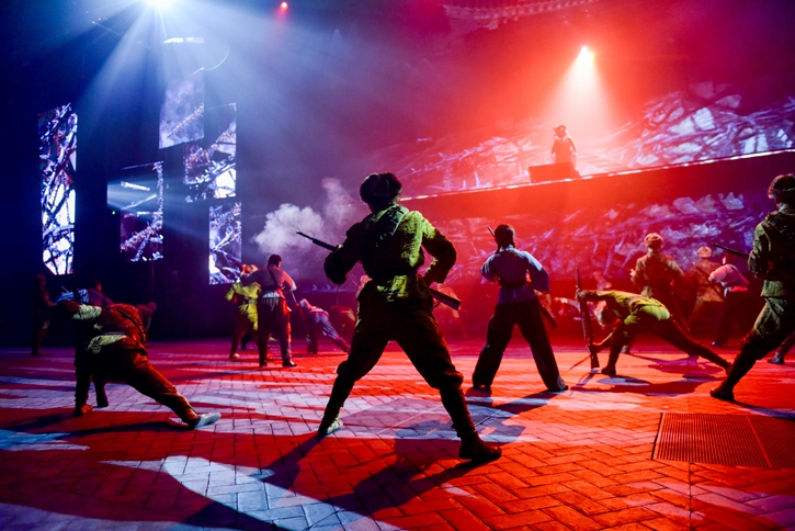 《12.12》通过各种舞台与影视特技手段,打斗、爆破、摔落效果上的“真实”:真看、真听、真反映,给观众真实的特技特效体验。突破传统舞台、布景的模式,以真实场景与建筑为舞台,营造真实的历史地域氛围,给观众以真实的视听体验。