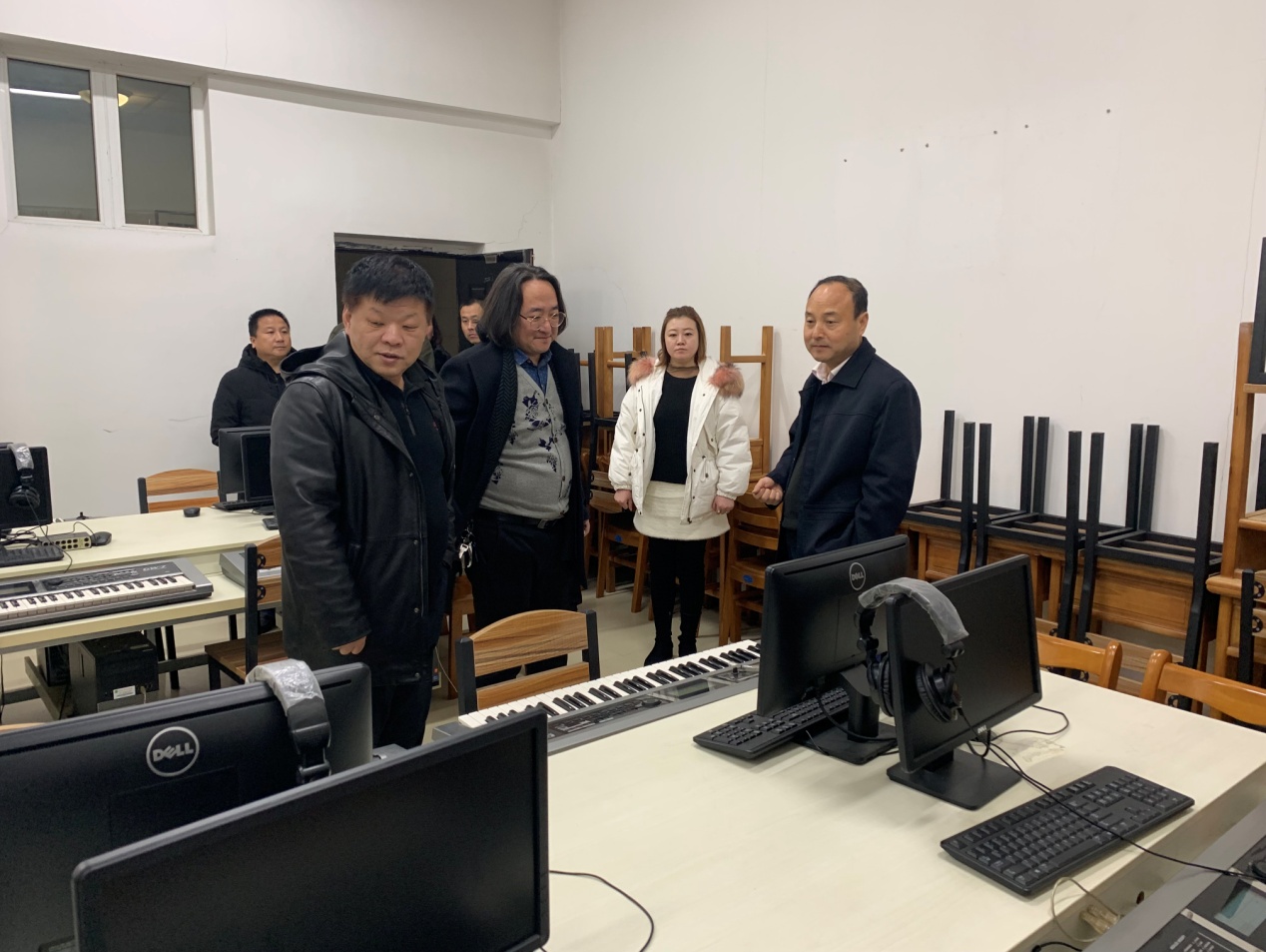 座谈会前赵曼董事长在公司领导的陪同下,检查了公司实验室,舞蹈教室,MIDI教室及琴房和各教学实训场所,并详细了解了实验室的建设情况及当前设备的使用情况等等问题,在细心听取完实验室工作人员的讲解后,赵曼董事长对实验室人员的工作表示肯定。