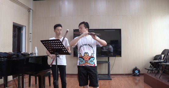 王辉老师参赛课程为专业技法课《竹笛》,他从多个角度为员工示范、讲述G大调竹笛在演奏时的气息把握技能,采取多种训练方法在课堂中加强员工的基本功训练。