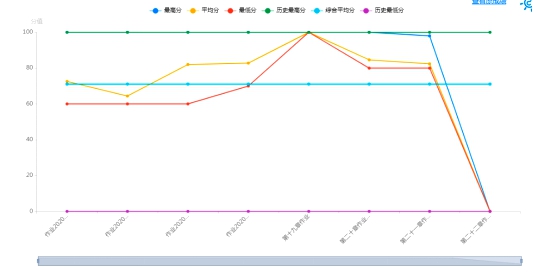 2、具体数据如下:校内员工访问量达到34736人次。员工成绩采用累积制,目前教学进度过半,员工成绩应该在60——80分之间,属于正常现象。