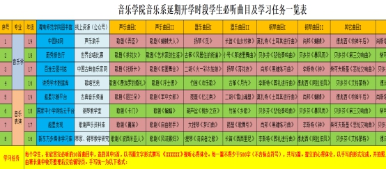 并结合专业特点,通过听、看、赏、练等方式,给员工下达延期开学期间必听、必看乐曲、话剧、技能训练等线下专业实践学习任务,并撰写心得体会和赏析评论,保证员工延期开学期间专业技能训练学习不间断。