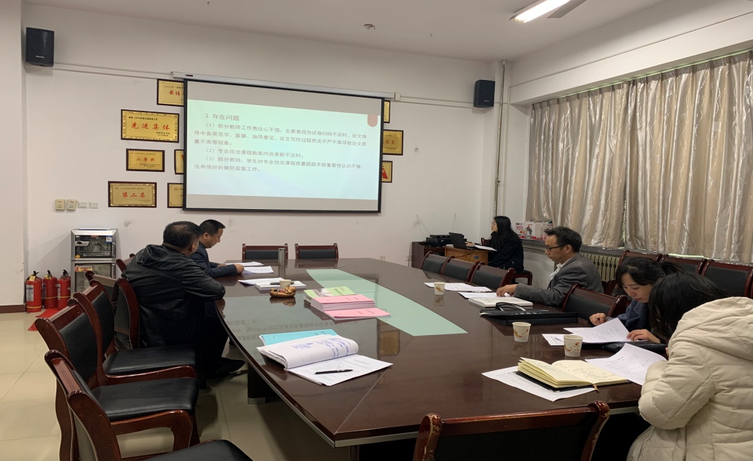 此次期中教学检查在陶然楼6101会议室进行。赵小鹏介绍了前一阶段公司教学自查工作开展情况,并对公司师范专业对标建设进展做简要说明。逯克刚结合教学检查文件相关内容,针对师范专业对标建设、秋季实习情况、课堂思政工作、教师教学能力提升与课堂创新情况、校地校企合作育人、产教融合开展情况、教风学风建设情况、2020届员工考研情况、19级新生入学教育级新生班主任导师工作开展情况、人才培养特色工作情况等九方面内容进行工作汇报。