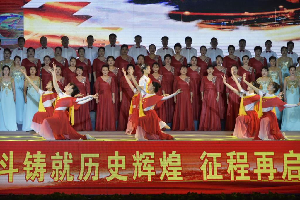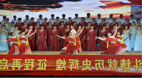 伴随着豪迈奔放的鼓声,非物质文化遗产水苏老鼓奏响了颂党的强音,童声二重唱《唱支山歌给党听》、歌伴舞《迎风飘扬的旗》拉开了晚会的序幕。公司为了加强与地方的合作,参演了歌伴舞《迎风飘扬的旗》和小品《春天的故事》。《迎风飘扬的旗》由苏力老师带领20级和19级部分舞蹈生参演《迎风飘扬的旗》,表现了爱国主义情感以及对中国共产党的坚定信仰。中华民族从古到今走过逆境、历过风雨,从昨天走来,向希望走去。他希望通过该曲鼓励听众,在理念和信仰的支撑下,面临再多考验都要屹立不倒。