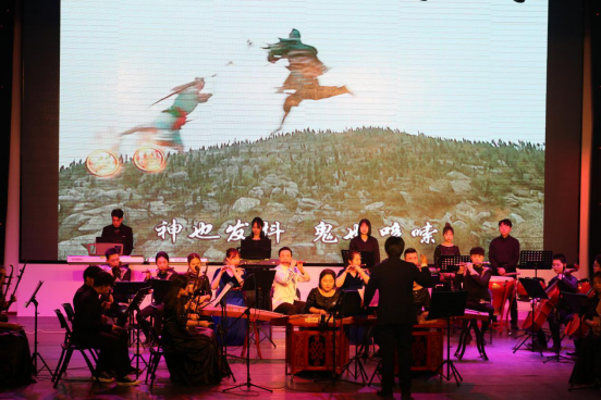 公司老员工乐团复建于2019年7月(前身为1994年10月渭南师范专科公司老员工艺术团乐队),乐团现隶属老员工艺术团,下设管弦乐团和民乐团,乐团采用双管编制,现有演奏员80余人,形成了以员工为主体,部分青年教师参与的地方高校老员工乐团。音乐会在欢快祥和的《春节序曲》中正式拉开序幕。《百花引》、《凤求凰》、《赛马》、《跑旱船》等精彩节目接连上演。逯克刚、李小凡、李静、刘鑫几位青年声乐教师带来《为祖国干杯》,他们用热情的歌声为祖国的繁荣喝彩,为祖国的强盛干杯;萨克斯与大提琴重奏《走西口》,运用西洋乐器特有的渲染力,铺垫出苍凉氛围;“大漠孤烟直,长河落日圆”,民族风格筝曲《大漠行》配以打击乐,展现出西部英雄英勇强悍,坚贞不屈的民族精神;《北京喜讯到边寨》以充满激情的旋律,生动勾勒出边寨人民听闻喜讯后的狂欢场景。欢快热烈的旋律中音乐会落下帷幕,本场线上音乐会内容丰富、形式多样、精彩纷呈,为云端另一头的观众献上了一场充满家国情怀的新年音乐会。