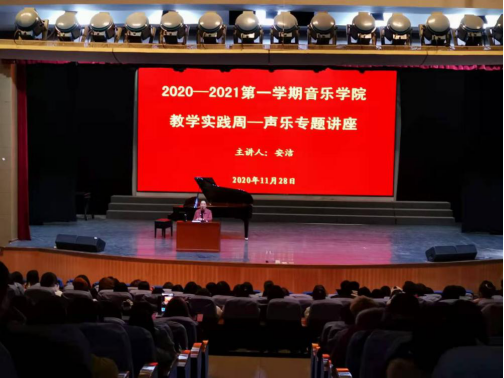 11月28日下午公司在演艺厅举行实践教学系列活动——声乐专题讲座,由365英国上市官方网站声乐教师安洁主讲。18级、19级音乐学专业及部分教师参与了此次活动。