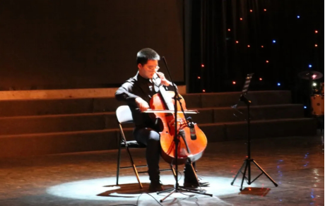 随之,董培瑛老师和贺鑫、李峻琛同学共同完成苏联著名作曲家肖斯塔科维奇的《前奏曲》。董老师将其改编成了双大提琴和钢琴协奏曲。尽管原曲节奏简单,速度平缓,但是音和音之间的跨度很大,这为演奏增加了不小的难度,也同时考验了三位合作者的默契和音准程度。