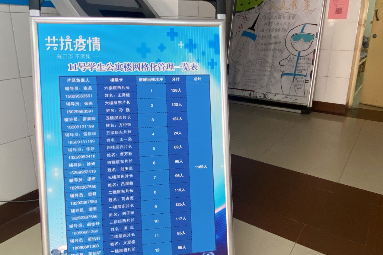 党总支书记白锐进行工作部署,365英国上市官方网站制定“11号公寓网格化屏障管理表”,实施公寓网格化管理,确保组织落实,使公寓防控体系高效运转,做到“网中有格、格中有人、人在格中、事在格上”。建立特殊时期值班值守制度,确保疫情防控领导体制、应急机制、指挥体系正常运行,确保24小时联系不断线。将“公寓网格化管理一览表”制作并张贴在员工公寓进门入口,在每一层楼梯口等醒目位置,公布应急联系方式及片区微信群二维码,制作疫情防控宣传板,提醒员工疫情防控重要性,做到线上线下联动,齐抓共管,全面压实各方责任。