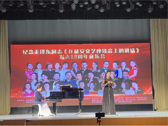 5月27日,由陕西省教育厅艺术教育委员会、陕西省高校音乐教育专业联盟主办的纪念“毛泽东同志《在延安文艺座谈会上的讲话》发表80周年音乐会”在延安大学杨家岭校区大礼堂精彩上演。公司副经理逯克刚带队,青年教师徐妍参与了本次音乐会的演出。