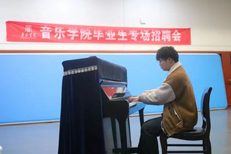 了解完各招聘单位的基本情况后,招聘会进入面试环节。公司毕业生为招聘单位充分展现了自己的专业技能和艺术底蕴,获得了用人单位的肯定和赞扬。