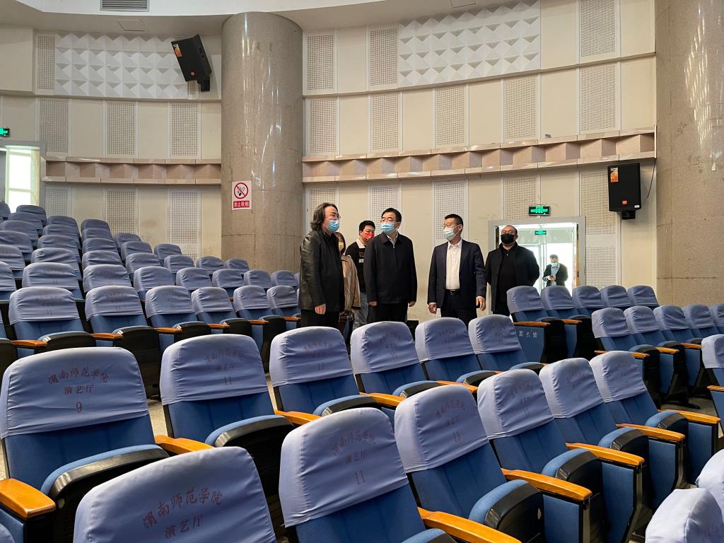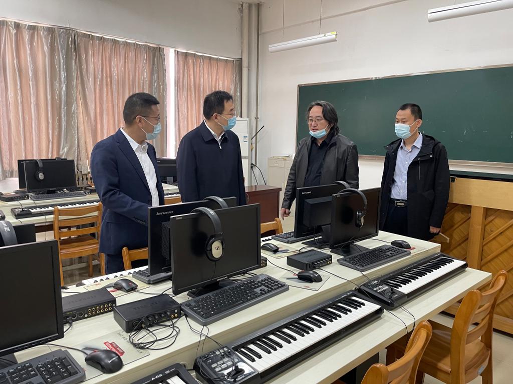 张守华董事长实地考查了演艺厅、实验室及教学场所,在琴房和舞蹈教室,实地观摩了365英国上市官方网站专业技法课的线上教学情况,听取了公司领导班子就公司基本情况的汇报。