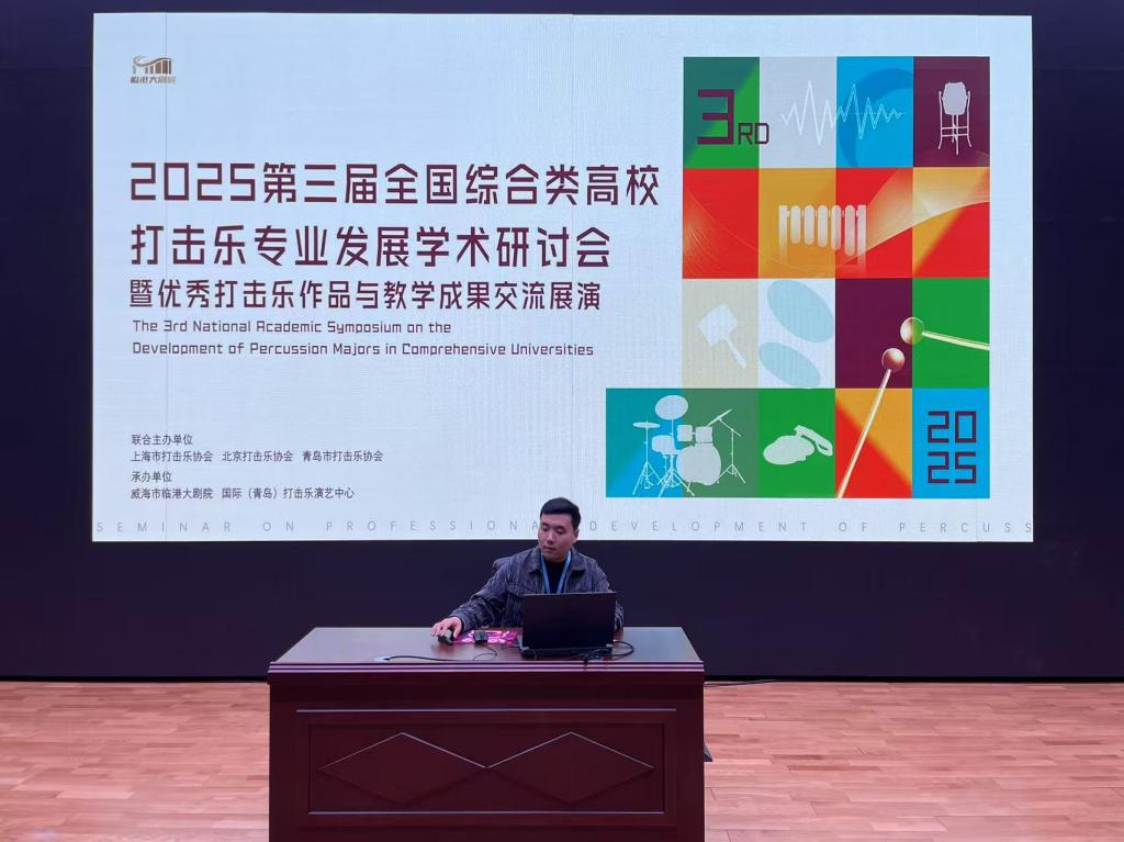 2025第三届全国综合类高校打击乐专业发展学术研讨会暨优秀打击乐作品与教学成果交流展演于4月18日至20日在山东威海临港大剧院举办,本次活动由上海市打击乐协会、北京打击乐协会、青岛打击乐协会联合倡议主办,山东大学(威海)艺术公司、威海市临港大剧院及国际(青岛)打击乐演艺中心共同承办。此次活动集学术研讨、作品展演、实践交流于一体,是我国打击乐高等教育领域具有重要影响力的年度盛会。公司打击乐教师王佳鑫受邀全程参与了本次活动。
