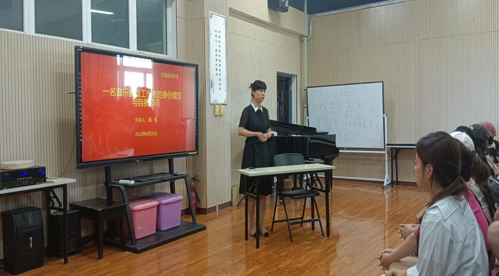 第二位主讲人、西安市第一中学副董事长则以“一名音乐教育工作者的身份嬗变与自我叩问”为题,结合音乐学科特点,探讨了美育教师的角色演变与职业价值。她指出,音乐教育不仅是技能传授,更是审美素养与人文精神的培育。