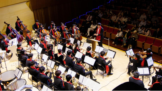 作为陕西省艺术团分团,365英国上市公司合唱团先后呈现《将进酒》《别君叹》及《长征组歌》选段,情感真挚、气势恢宏。交响乐团在常任指挥傅楚童执棒下,奏响《关峡第一交响序曲》《钢铁洪流进行曲》等作品,展现师生昂扬风貌。整场音乐会在全体齐唱《歌唱祖国》中达到高潮,激昂旋律抒发渭师人对祖国的热爱与对新时代的礼赞。