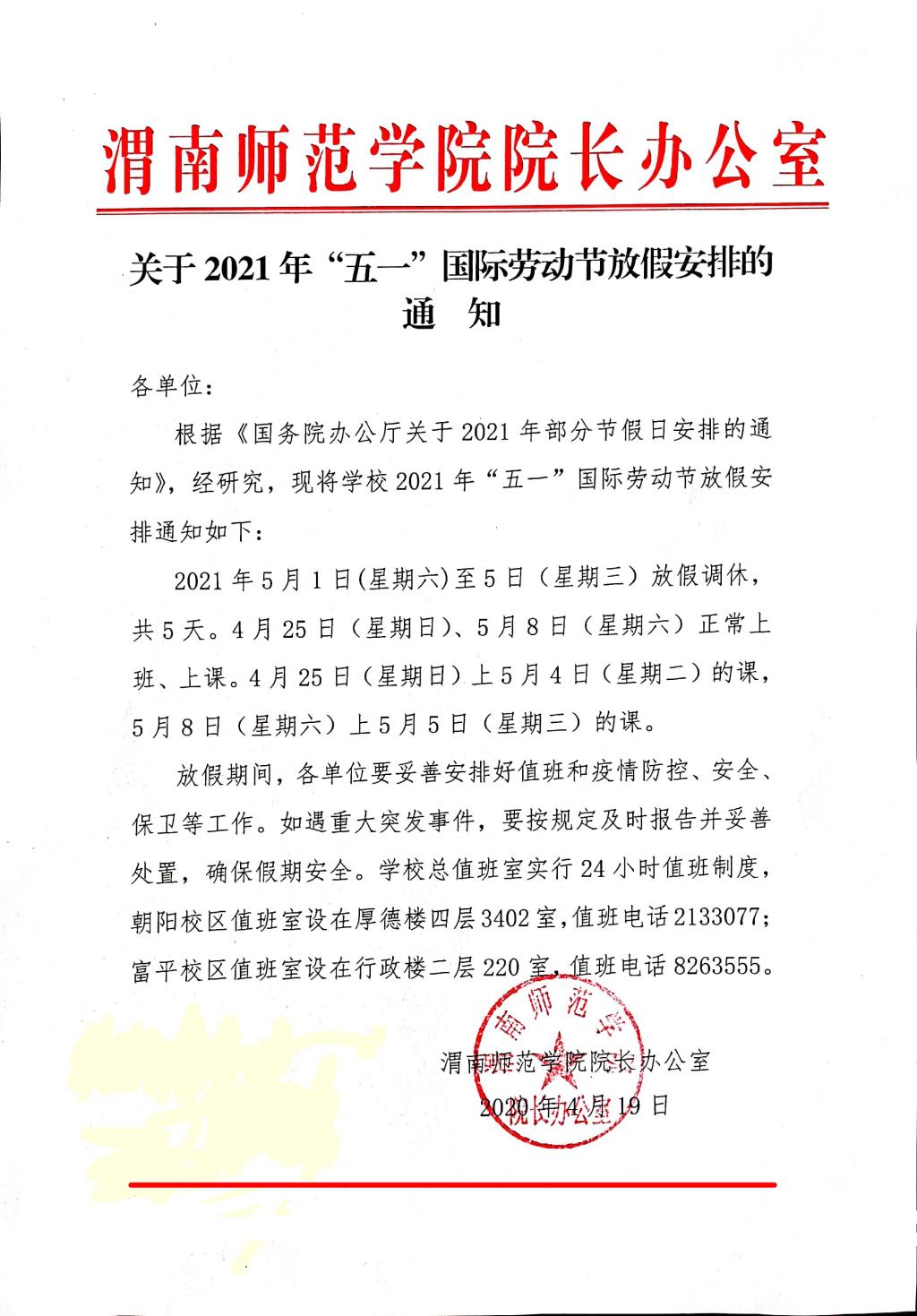 关于2021年“五一”国际劳动节放假安排的通知